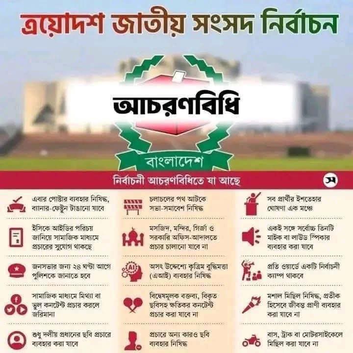 | ৩ | ত্রয়োদশ জাতীয় সংসদ নির্বাচন ২০২৬ এ নির্বাচনী আচরণবিধি | | ০৫-০১-২০২৬ | দেখুন | |